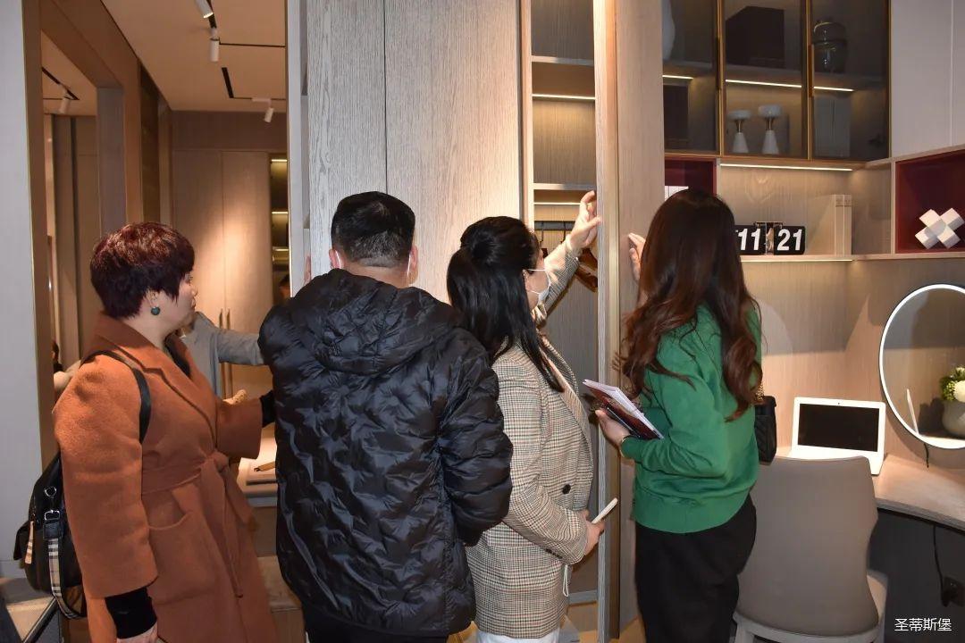 展厅内,专业的导师为嘉宾们详细介绍了产品工艺特点、整体造型特色、装饰元素以及色彩搭配等;还有全屋定制、固装、营销等部门高管,与经销商热情的交流沟通,并为大家讲述了圣蒂斯堡的原创设计理念。“洛斯”主打的差异化轻奢,更是赢得了在场经销商家人的高度赞誉;圣蒂斯堡用实际行动证明了在家居界不可比拟的产品优势和实力。